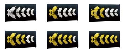 3条金色麦穗、2条银色麦穗,表示取得高级保安员资格;