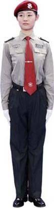 3条金色麦穗、2条银色麦穗,表示取得高级保安员资格;